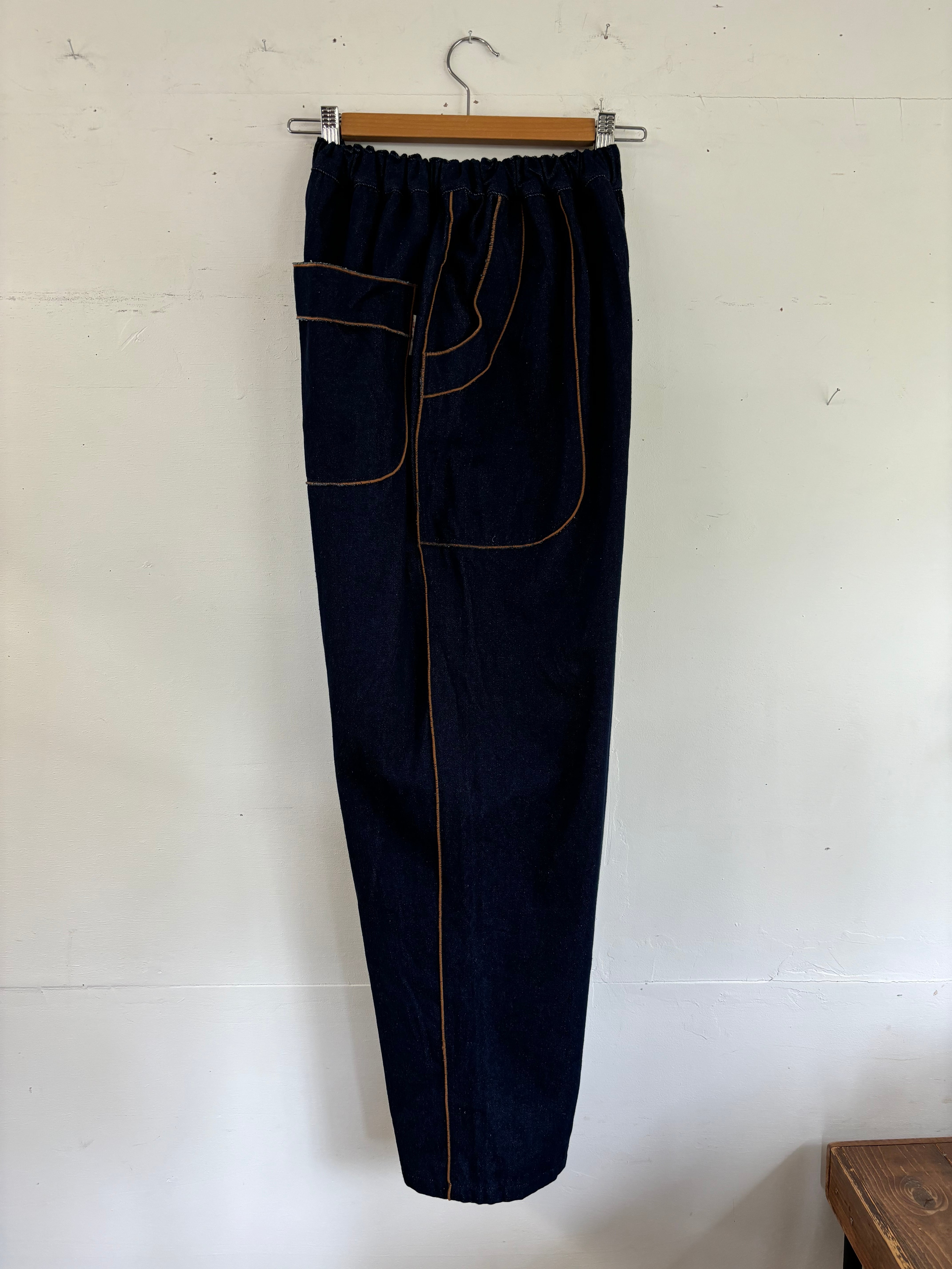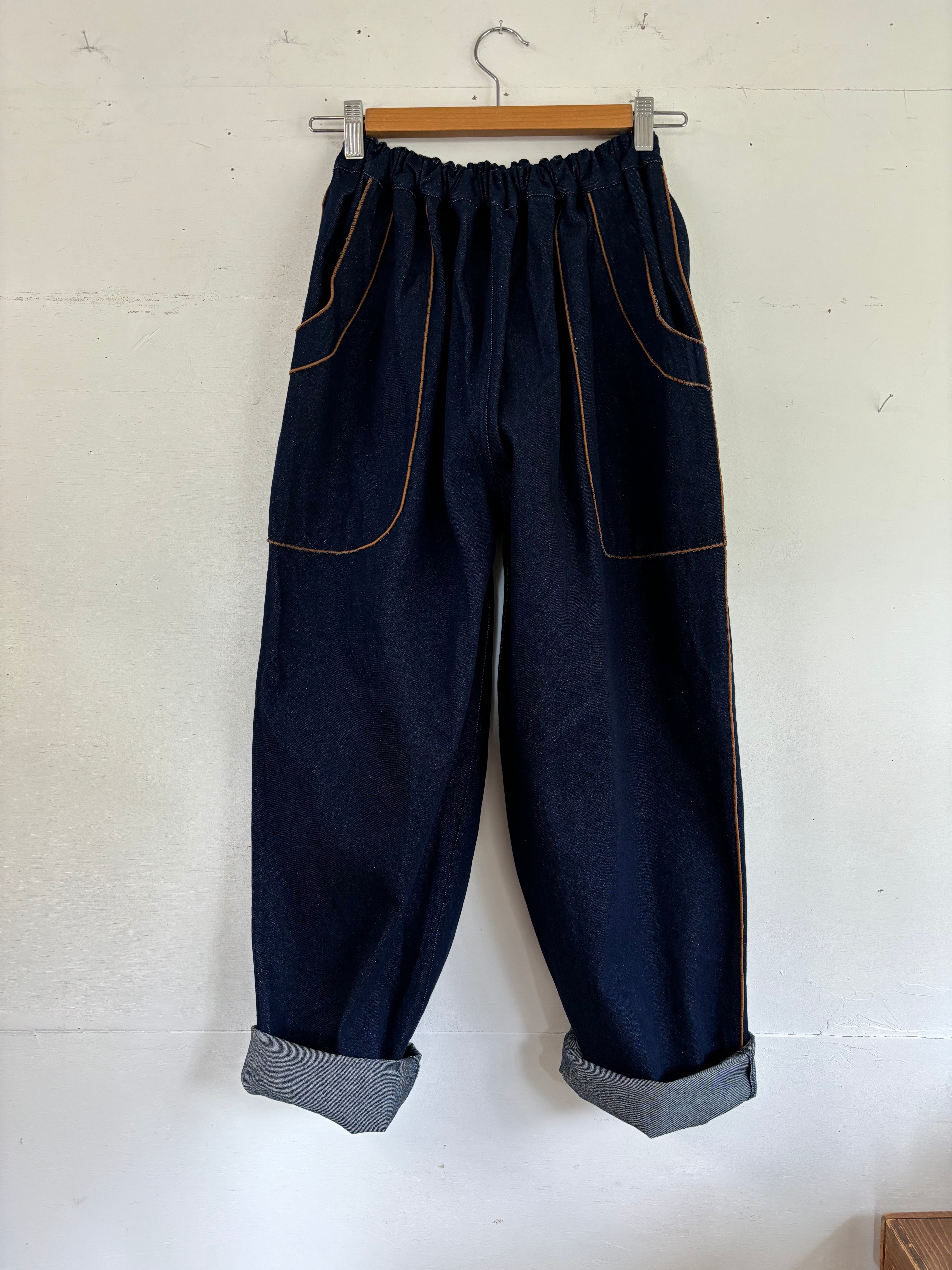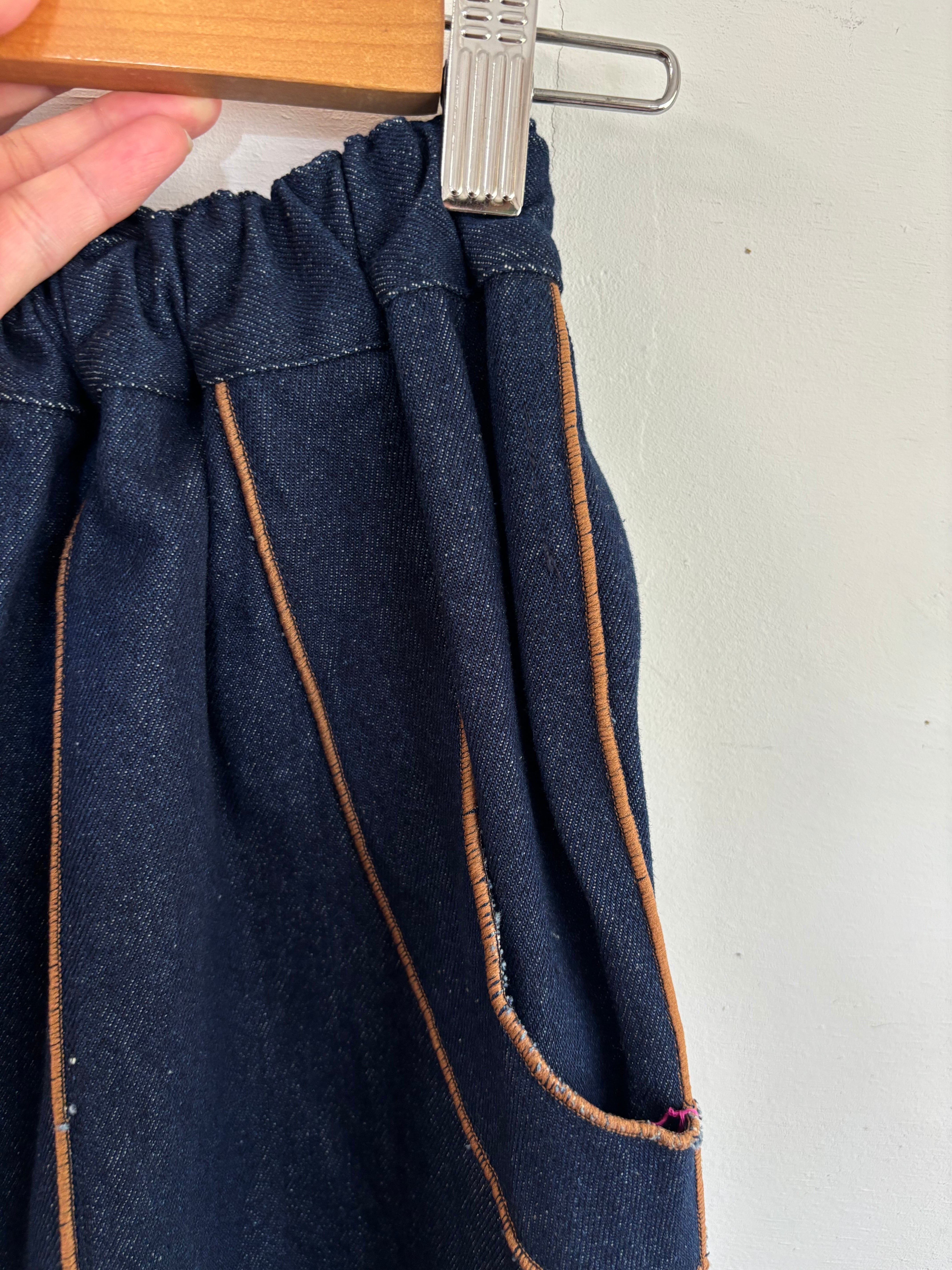 縁取りデニムパンツ キャメル